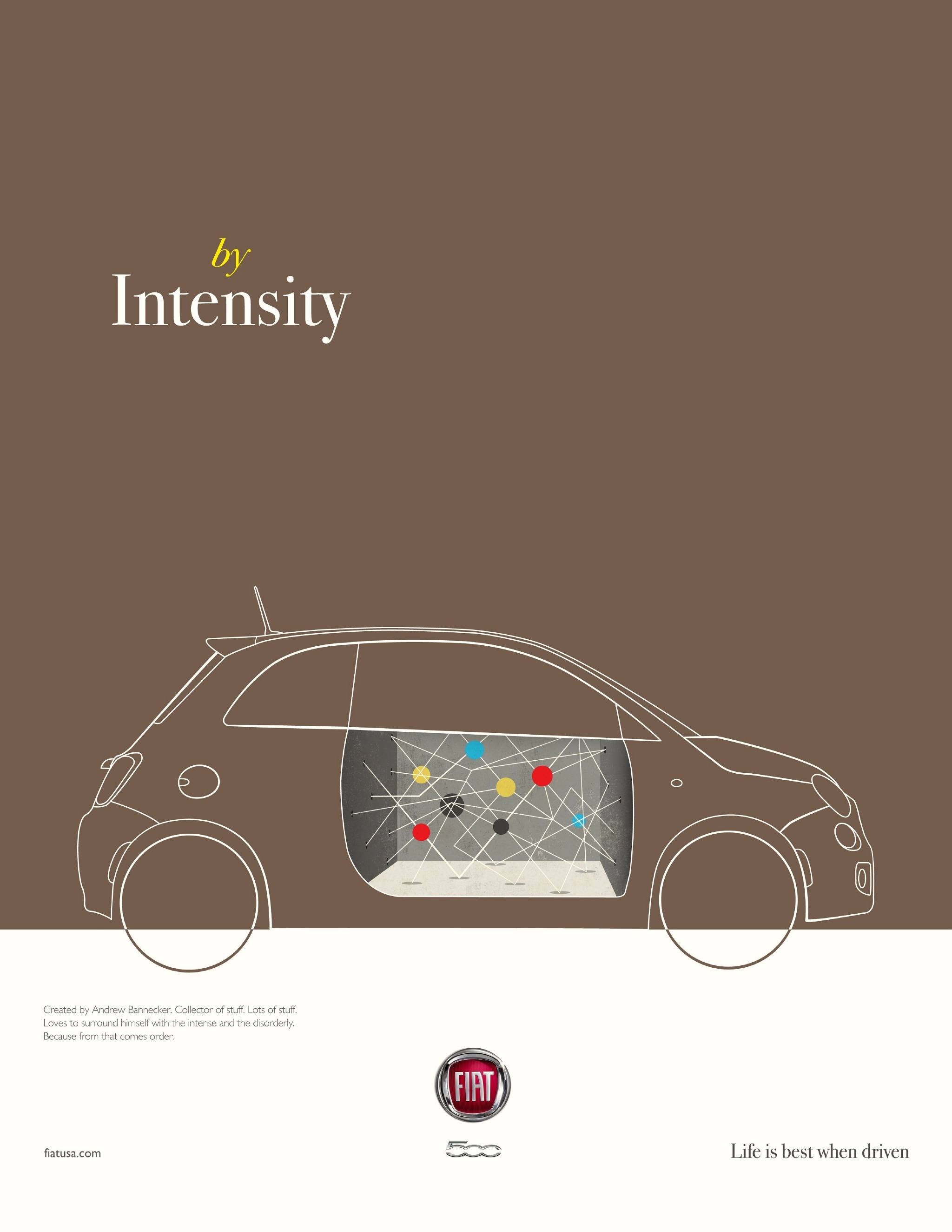 The FIAT 500 is an iconic car and we treated it like one. We thought of it as a blank canvas, a medium, through which passionate people express themselves. The car reflects the emotion that drives such people — whom we referred to as "expressionists".