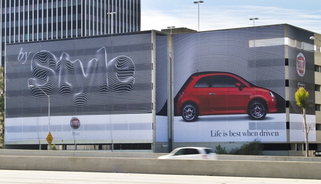 How do we get the “creative class” to see, touch and feel the FIAT 500? At a series of art, music and auto EVENTS, the car was featured as a TRAVELING CANVAS for some top international artists to paint on...one section at a time. Here’s Tim Biskup at the FIAT Studio during the LA Auto Show'10 kicking off the "LIVE ART TOUR" by expressing his emotion for the car on its hood.